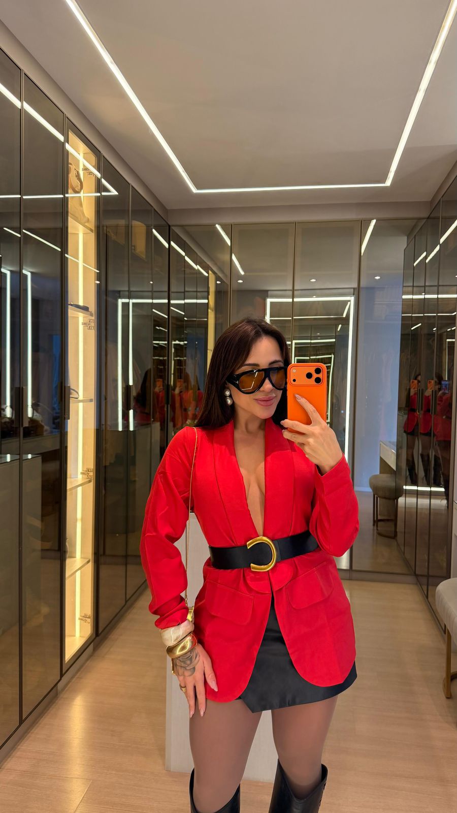 Disponível nas cores vermelho e rosa, é uma peça versátil que combina facilmente com calças, shorts, saias ou composições com croppeds e blusas, permitindo criar looks modernos e atemporais.