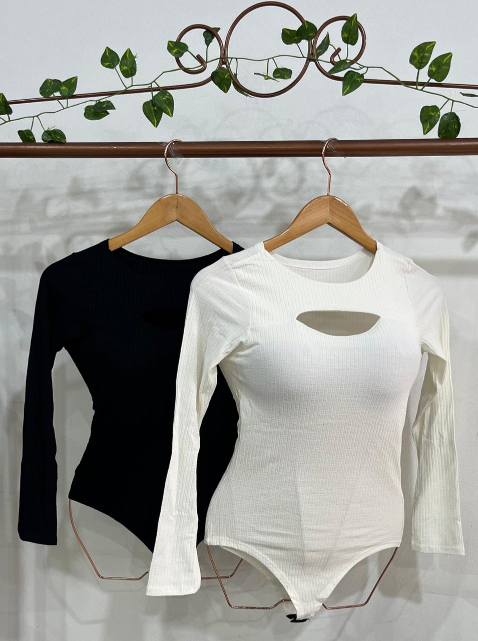 Body confeccionado em tecido canelado, confortável e com ótimo ajuste ao corpo, exatamente como você vê nas fotos. O modelo possui bojo, mangas longas e um recorte moderno na parte do colo, trazendo um detalhe diferenciado e estiloso à peça. Conta com fechamento por colchete garantindo praticidade no uso. A modelagem valoriza o corpo e proporciona conforto no dia a dia. Ideal para compor looks versáteis, do casual ao mais arrumado.
