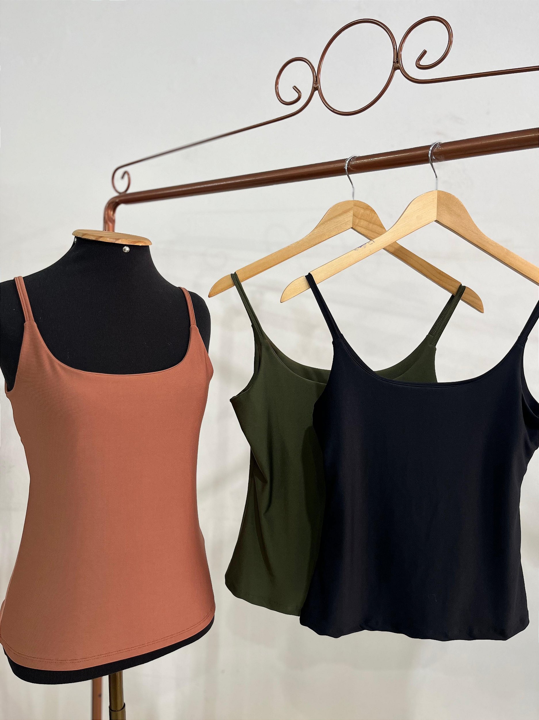 Confeccionada em tecido suplex, a peça oferece excelente elasticidade e se ajusta perfeitamente ao corpo, garantindo conforto e valorizando a silhueta. As alças finas trazem delicadeza ao look, sendo ideal para dias mais quentes ou para composições com sobreposição.