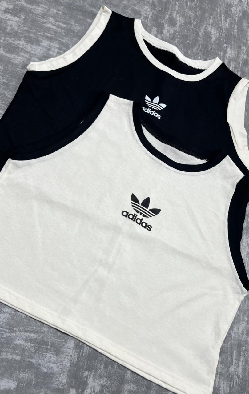 Modelagem: Cropped curtinho, gola redonda, alças largas
