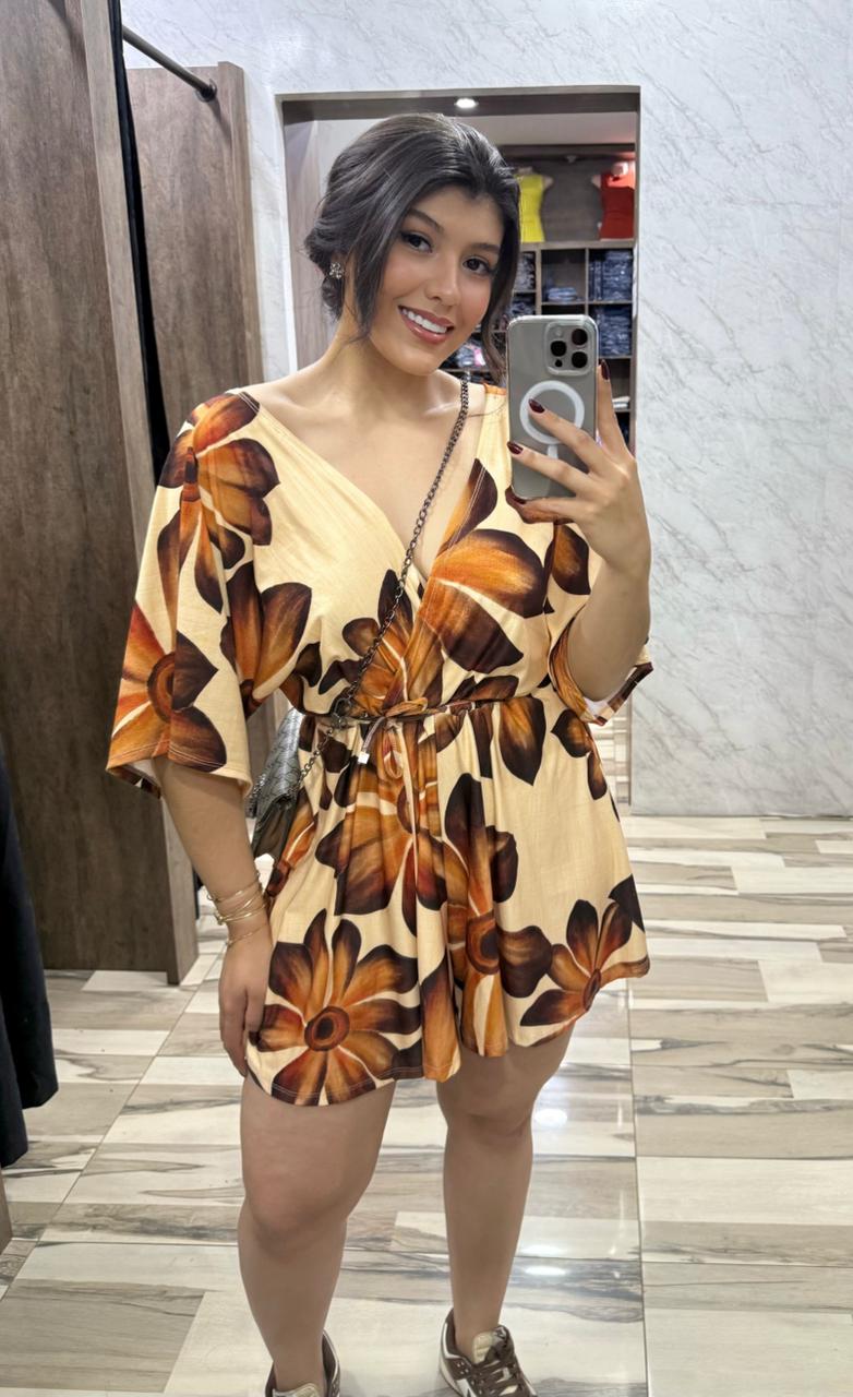 Estampas disponíveis: Floral marrom, floral vermelho e floral verde