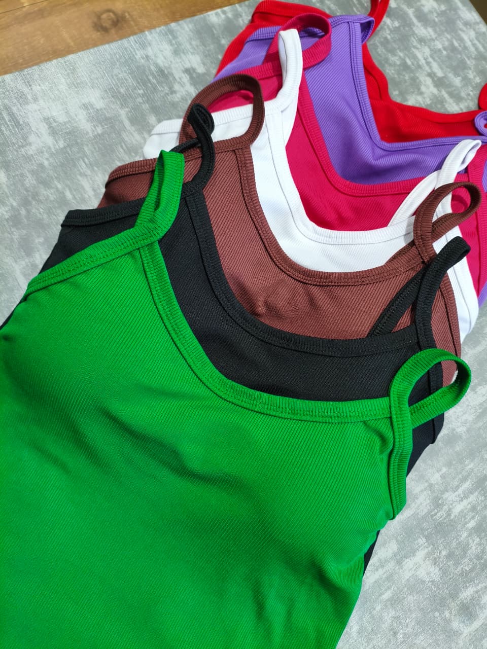 Confeccionada em tecido canelado de alta elasticidade, ela se ajusta perfeitamente ao corpo e proporciona total conforto. Possui bojo embutido, garantindo sustentação e dispensando o uso de sutiã.