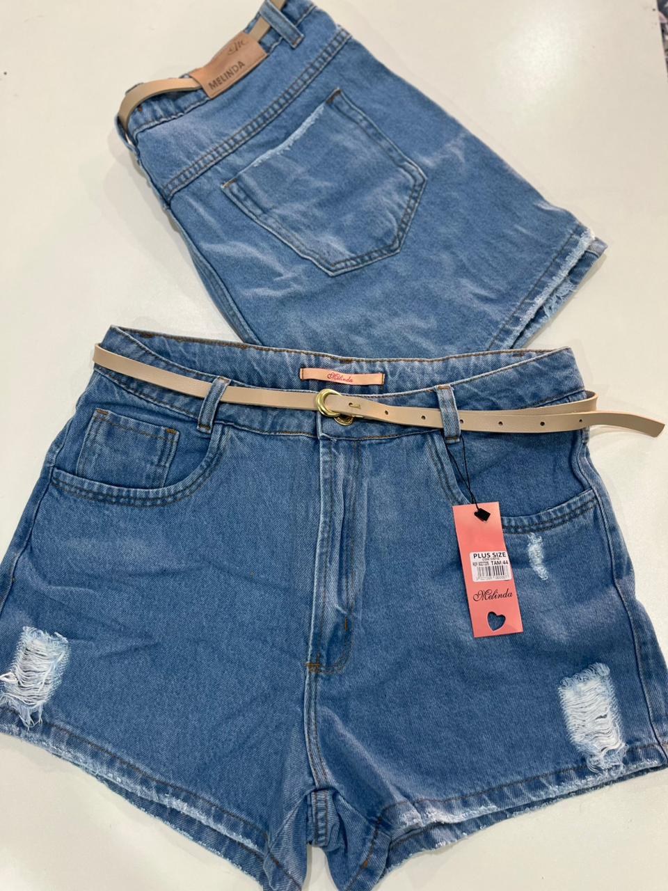 Shorts Jeans Plus Size com Cinto e Detalhes Destroyed Lavagem Clara